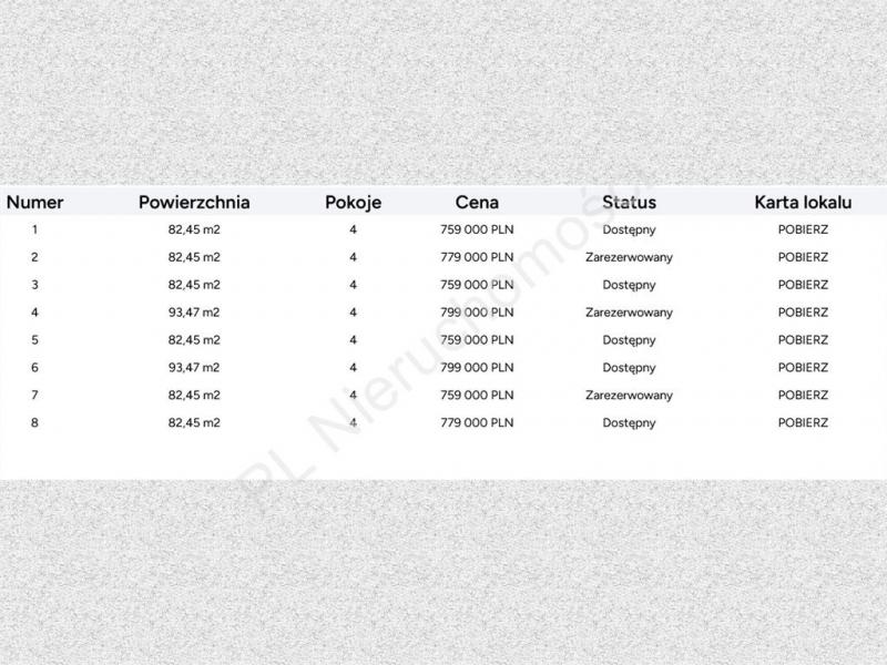 Oferuję na sprzedaż nowy dom szeregowy o powierzchni 82,45 m. Nieruchomość z czterema pokojami znajduje się na działce o powierzchni 100 m. Budynek zbudowany w 2026 roku, wykonany z silikatu. Ogrzewanie gazowe oraz dostęp do mediów: wody, prądu, kanalizacji, gazu i internetu. W budynku znajduje się garaż.