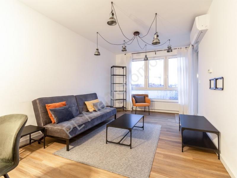 -Przestronny, jasny salon z aneksem kuchennym i wyjściem na loggię